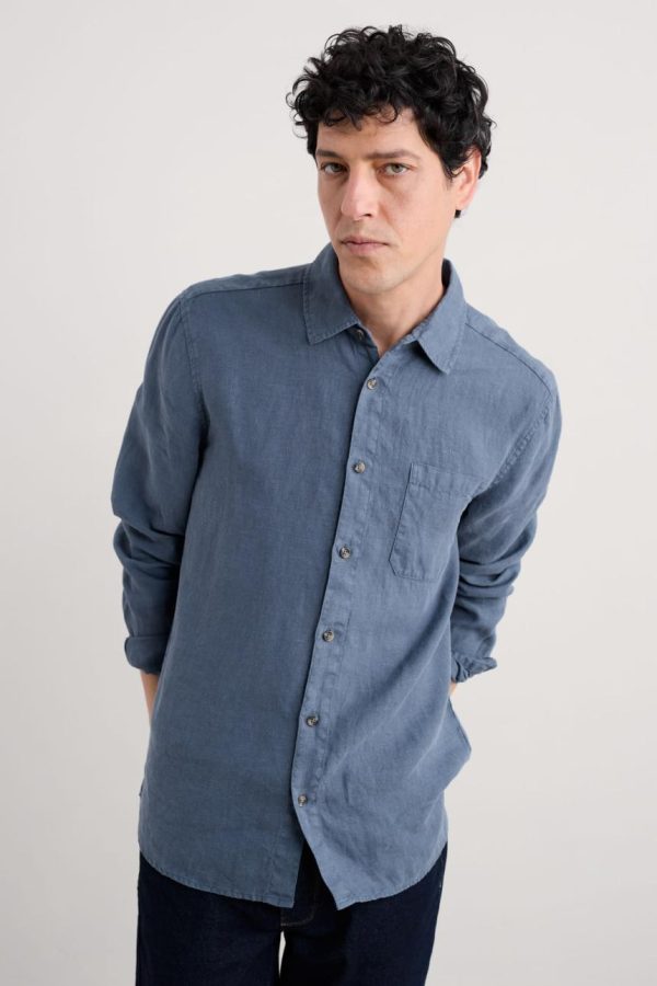 An easy-fitting shirt made from breathable linen, with long sleeves that are easy to roll up for casual weekends. The curved hem is slightly stepped so it looks great untucked, or worn unbuttoned over a T-shirt. Garment-dyed for soft and characterful colour.