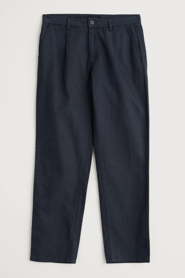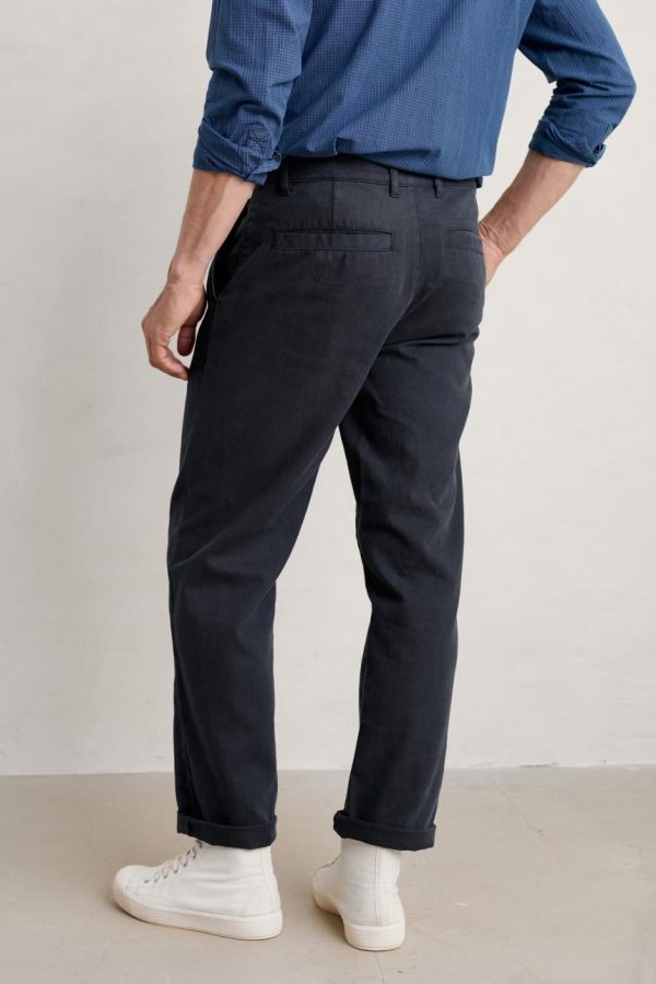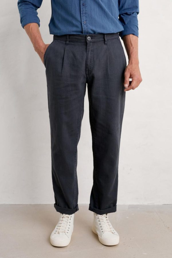 Woven from a breathable blend of organic cotton and linen, our men’s Helmsman Trousers have a relaxed tapered fit and pleat front, making them the perfect choice for days when comfort and style are key. We love these versatile trousers paired with our Tollgate Jacket.