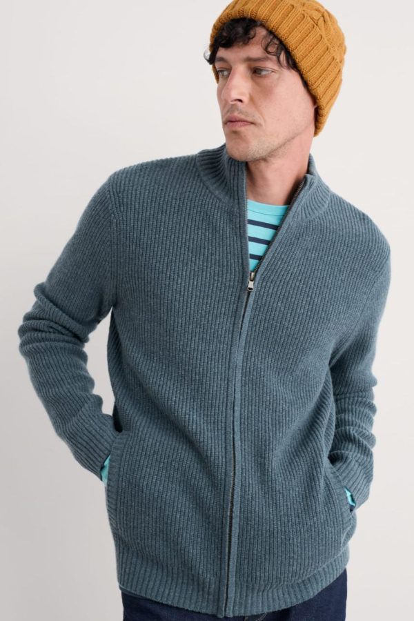 With its zip-through front and easy fit, our Mainmast cardigan has a relaxed and modern feel. It’s crafted from soft lambswool with recycled fibres for extra durability, and its mid-weight knit makes it a handy layer for all seasons. The snug high neck fits perfectly under a jacket or coat. We’ve finished the cardigan with traditional ribbed trims on the cuffs, hem and neck.