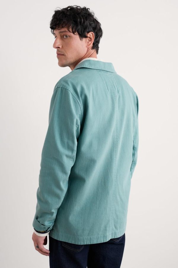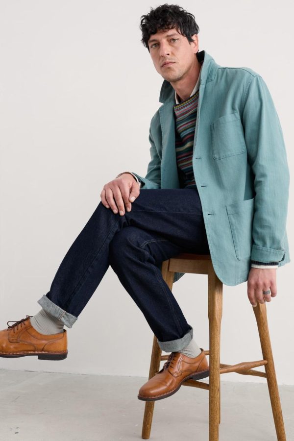 A casual jacket, inspired by the way Cornish artists would adopt the tough workwear of fishermen to wear in the studio. Made from a cotton and linen blend that is durable but comfortable, with a light herringbone texture. An easy extra layer over T-shirts or shirts. Designed to pair with the Helmsman Trousers.