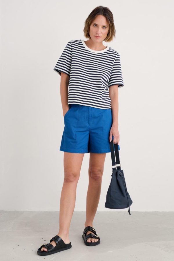 A real summer staple, our chino-style shorts are made from cool and comfortable woven organic cotton. They have an easy-wearing relaxed fit, sitting on the natural waist. The generous front pockets have a twin stitched detail, and there’s a second pair of patch pockets at the back.