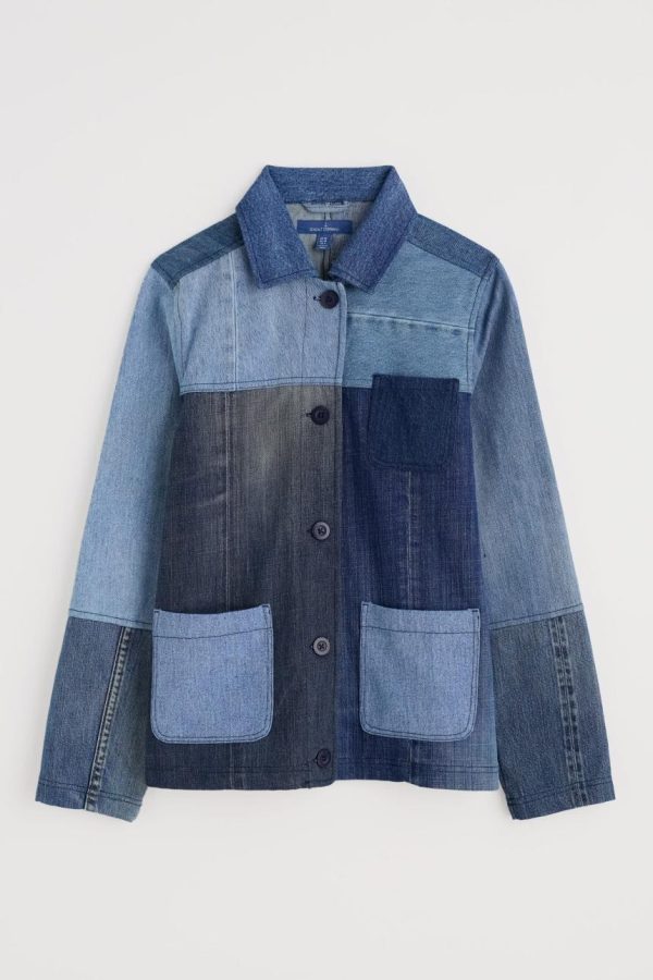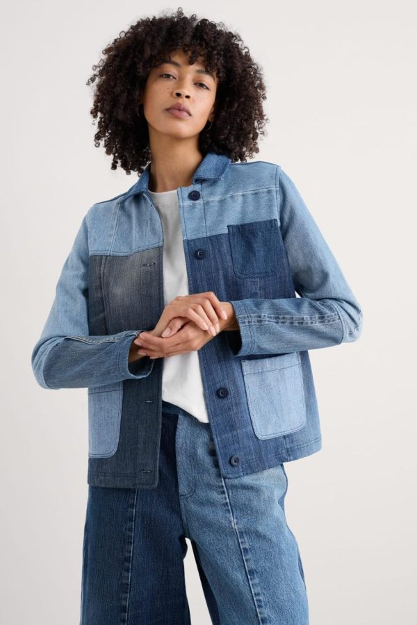 Inspired by traditional workwear, the denim jacket features generous patch pockets and a neat collar, in a relaxed fit that’s easy to wear and layer. Each individual jacket features its own unique pattern of denim washes, tones and textures. An original statement piece, crafted with repurposed denim to reduce textile waste within the clothing industry.