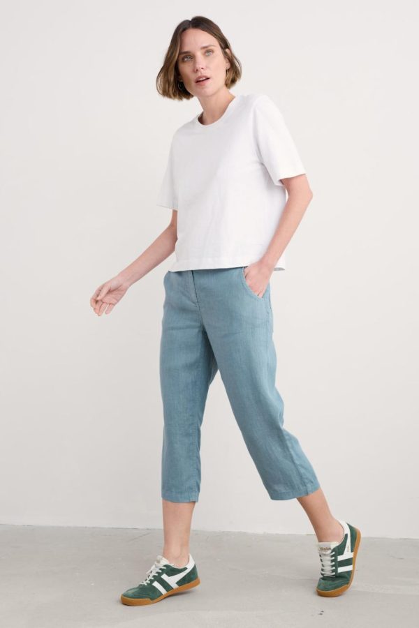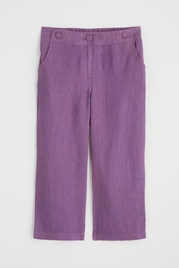 Our Brawn Point Crops are made from soft, breathable linen – one of our favourite fabrics for the warm weather – and cut for a relaxed straight-leg fit. Fabric-covered buttons add detail to the waistband, which has an elasticated back for extra comfort. Pair them with one of our organic cotton tops for a casual yet stylish look.