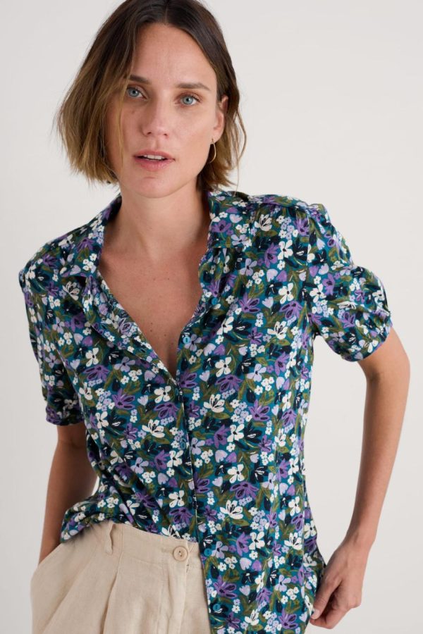 A joyful summer blouse in soft organic cotton and silky Modal blend jersey, with little gathers at the shoulder and sleeve for gentle volume. A breathable, drapey style that’s perfect for sunshine adventures.