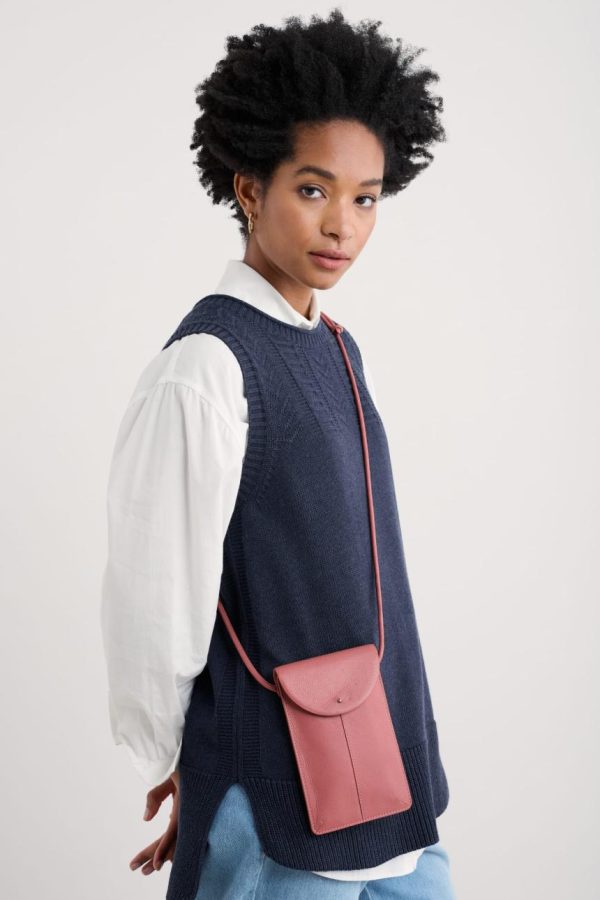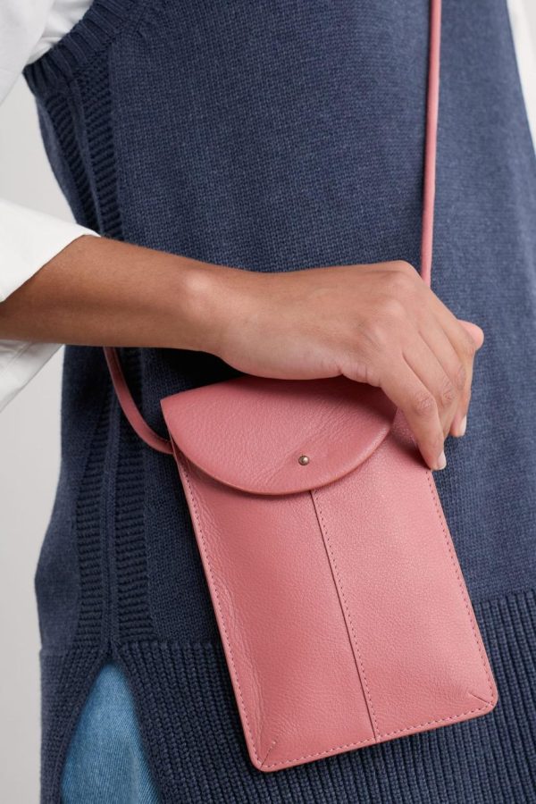 Keep things minimal with the sleek Fen Phone Bag, a stylish way to carry your smartphone. It’s crafted from supple leather, with soft suede inside the flap closure, which fastens with a Sam Browne metal stud. A slim pocket at the back holds your cards discreetly, and the matching leather shoulder strap can be adjusted for comfort.