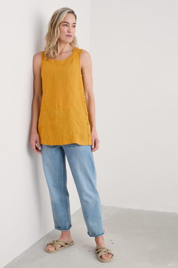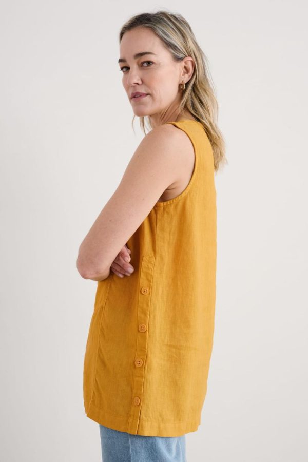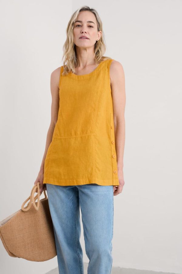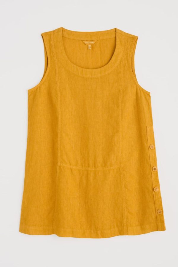 Lightweight, loose and perfect for relaxed summer dressing. The sleeveless Foredune Vest has an airy A-line silhouette with a slightly longer length for extra coverage. Made from naturally breathable linen and finished with faux side button detailing, it’s available in a selection of textured garment-dyed colours. Style with a pair of slim-fit crops and summery sandals for days on the go.