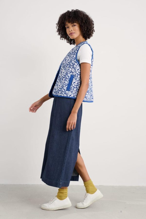 Every wardrobe needs a simple denim skirt, and our latest edition is a versatile styling piece, with a modern, straight fit. The V-shaped split at the back gives you ease of movement as well as an extra detail, while we’ve added a touch of stretch to the organic cotton for comfort and fit. Wear throughout the seasons, teamed with pumps and a classic T-shirt.