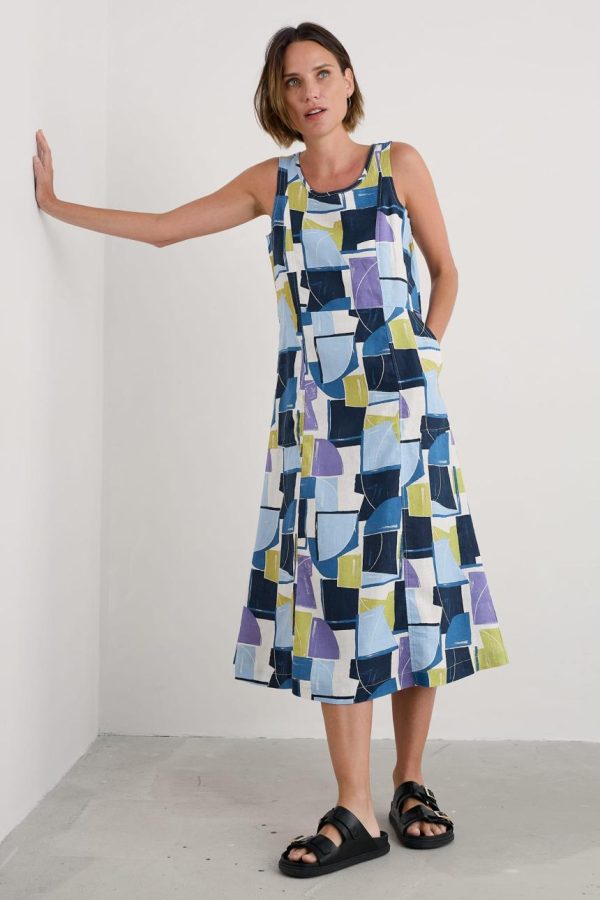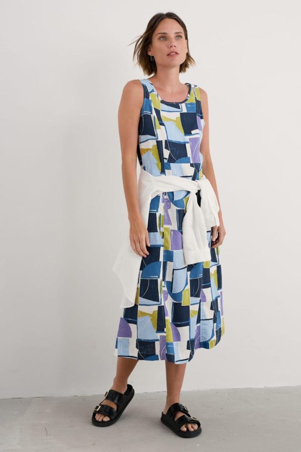 A sleeveless version of our midi Grass Wave Dress, woven with 100% pure linen. We’ve used careful design to perfect the shape and fit, from the round neckline and bodice shaping to the curved waist seam and flared skirt. Choose from a selection of vibrant garment-dyed colours and pair with sandals to suit your summer.