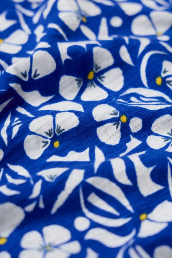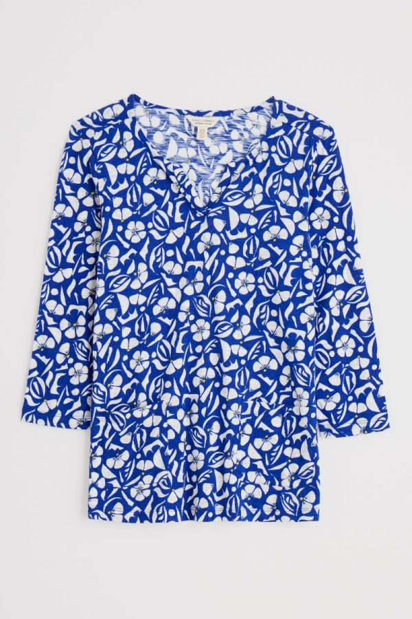 Our Gypsophilia Top is made from soft organic cotton jersey in a unique Seasalt print. It is designed for a relaxed fit and styled with 3/4 sleeves, a scoop neck with a notch detail and two front patch pockets. With organic cotton certified according to Global Organic Textile Standards by Soil Association. License Number: DK17684