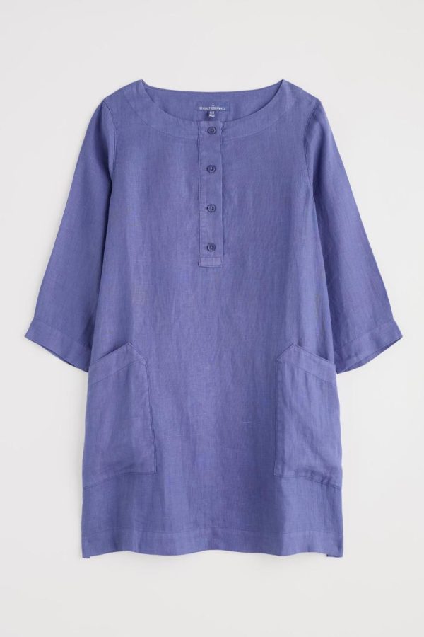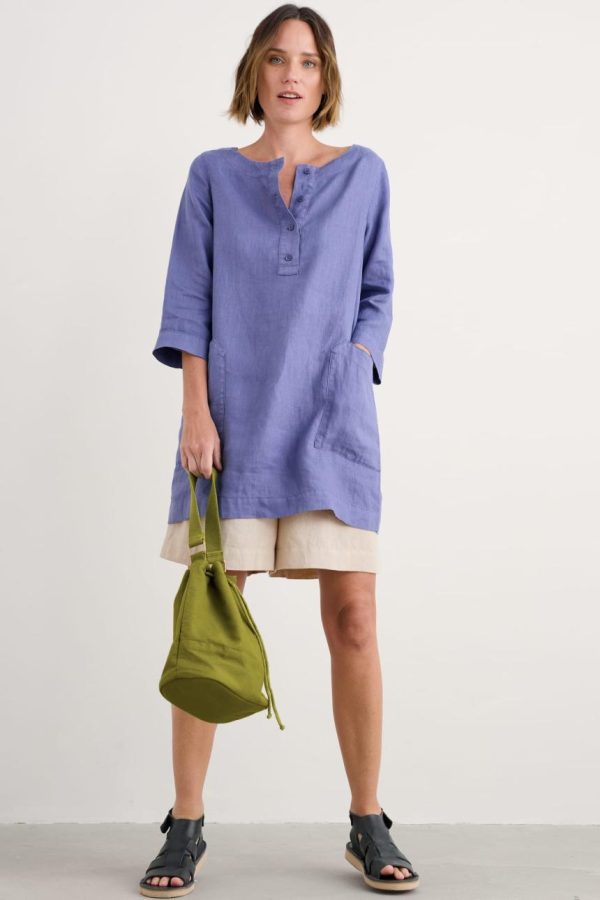 A versatile tunic with a half-button placket at the neckline, made from breathable linen. The colour has been garment-dyed for unique highs and lows, and should develop more character with every summer of wear. We love wearing it with leggings, and will pop an Easel Top underneath if we need extra warmth or a pop of contrast colour.