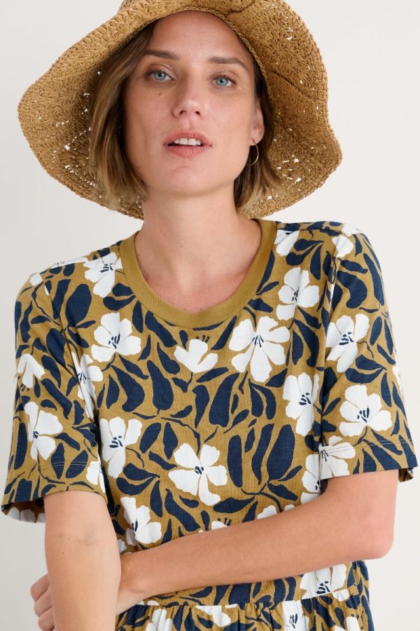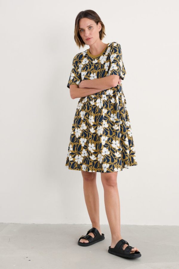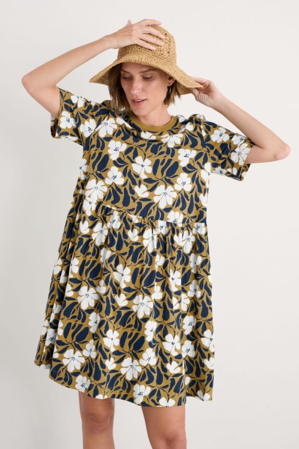 An easy-wearing summer T-shirt dress, made from soft organic cotton jersey. We’ve given the knee-length dress a relaxed, boxy fit, with loose-fitting half sleeves and gathers at the waist. It’s finished with a pair of in-seam pockets.