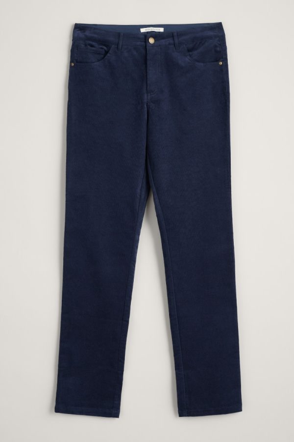 Beautifully soft Seasalt cord trousers. We’ve given our Lamledra Trousers a flattering slim fit through the leg, with a hint of stretch. With classic jeans styling, zip fly, front and back pockets and anchor branded rivets. A wardrobe essential for cooler days. Sizes 18-26 feature an extra comfy, elasticated back waistband. Choice of three lengths.