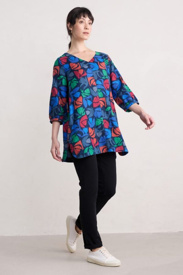 Effortless style, every day. The Loganberry Tunic has a relaxed fit, v-neck and three-quarter length sleeves that gather at the cuff. We’ve given it a slightly dropped back hem for extra coverage and hidden side pockets. Made from a premium quality organic cotton in cord (Loganberry) and woven (Folk Meadow) textures.