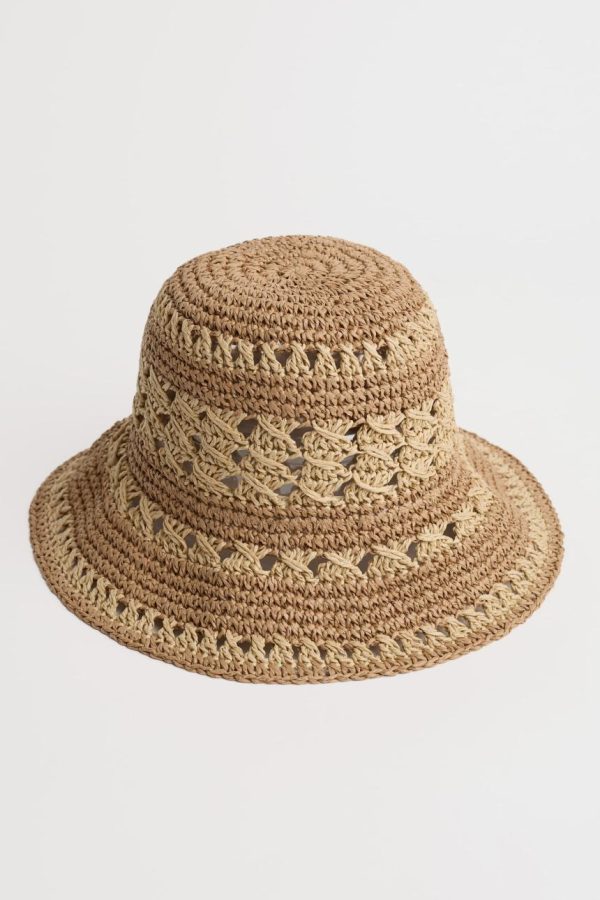 Inspired by classic garden hats, with a deep crown and a brim to shade your face and neck. Our sunhat is cleverly crafted from paper, with a delicate crochet pattern adding character. The perfect piece to see you through the summer.
