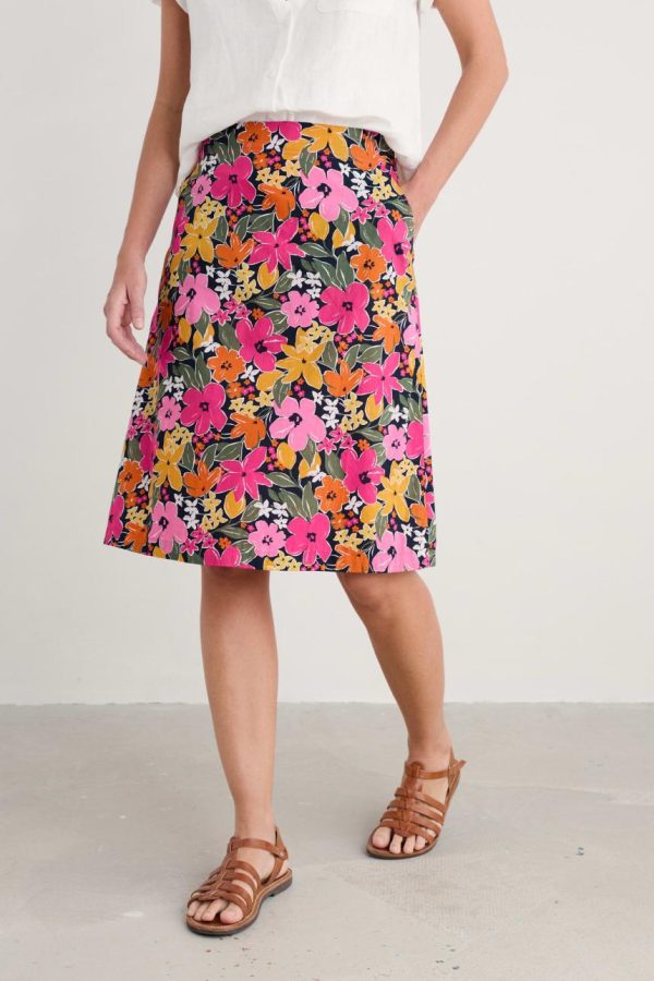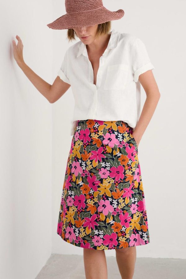 A really useful, below-the-knee length skirt in a unique Seasalt print. We’ve given our Paint Pot Skirt a flattering A-line shape, concealed side zip and two handy, slanted side pockets. We think it looks lovely with one of our plain linen or cotton jersey tops and a pair of leather sandals.