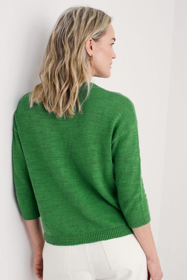 A classic button-through cardigan, knitted from a soft blend of organic cotton and linen fibres. It has an easy fit through the body, with dropped shoulders for a relaxed feel and 3/4 length sleeves. Ribbed trims at the round neck, cuffs and hem bring a neat finishing touch.