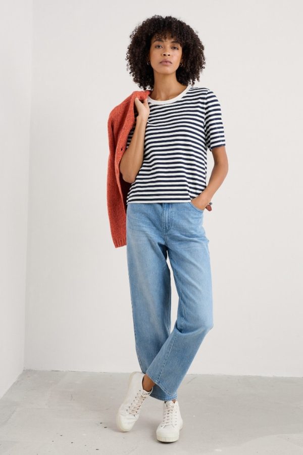 Timeless and easy-wearing, our mid-rise Penwith jeans are an everyday wardrobe essential. The straight-leg fit is relaxed and contemporary, and the reshaped yoke gives the jeans a flattering fit. They’re made from soft organic cotton denim with just a dash of stretch for extra wearable comfort. The back pockets are angled inwards for a flattering effect, enhancing the waisted shape of the jeans. Finished with time-honoured denim details such as a branded metal button and belt loops.