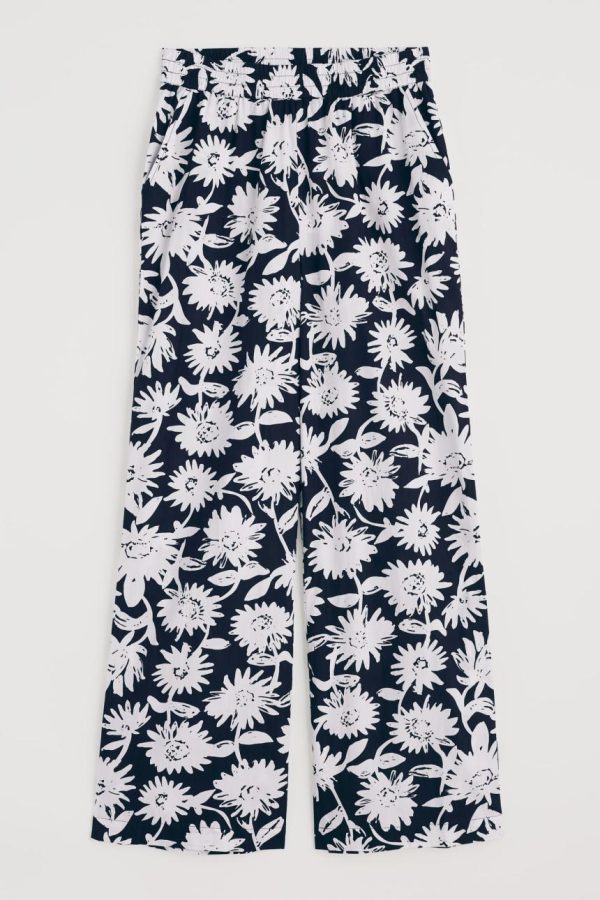 Made with GOTS-certified organic cotton poplin, these printed trousers are lightweight and breathable for summer wear. They have an easy pull-on style and a comfy elasticated waistband, while soft gathers below the waist add gentle volume for a flattering shape. A pair of in-seam pockets adds the finishing touch.