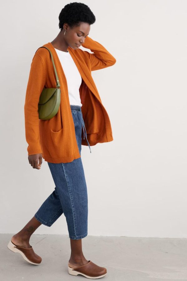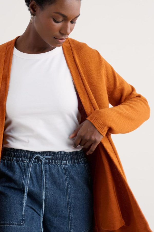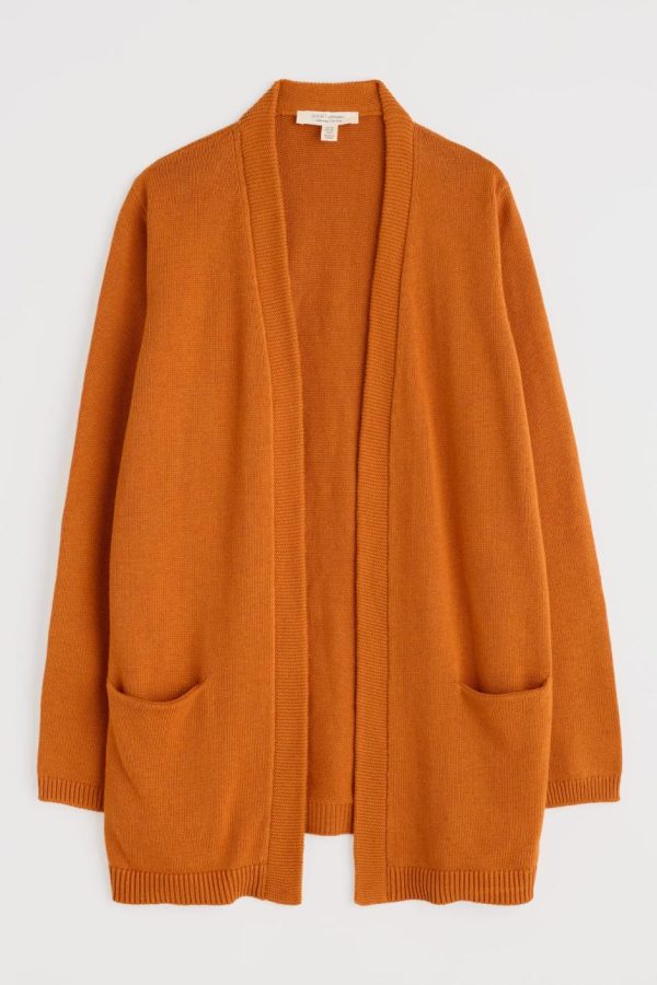 Everyone needs a long cardigan with handy pockets to layer over tapered trousers or one of our pretty printed dresses. We love the soft texture our knitted cotton, and the garter stitches and ribbed details, of our Riverboat Cardigan.