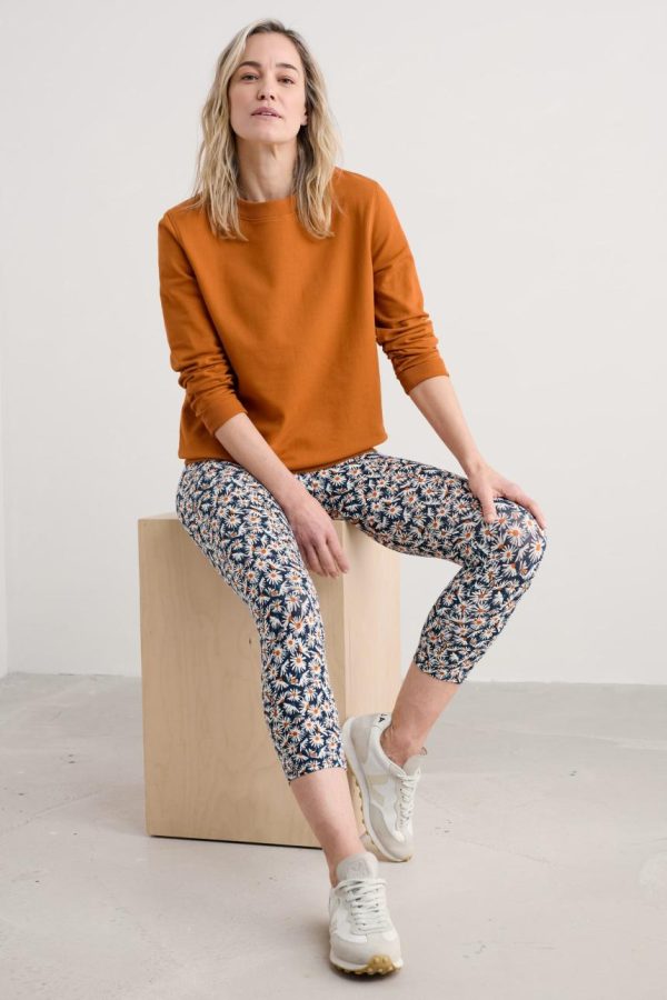 Our popular Sea Dance jersey leggings in a versatile cropped length. They’re made from GOTS-certified organic cotton, with a touch of elastane for a stretchy fit. The wide waistband is super-comfy, and we’ve secured the elastic to its inside to prevent any twisting. There aren’t any side seams, giving you a clean finish. A genuine wardrobe staple.