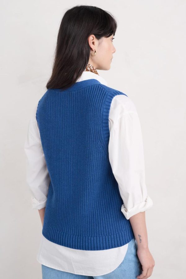 Our Swanpool knitted vest is crafted from soft organic cotton yarn with a traditional texture. Patch pockets and ribbed trims at the V-neck, armholes and placket add extra detail, while the neat buttons let you wear it open or closed. Perfect for layering.