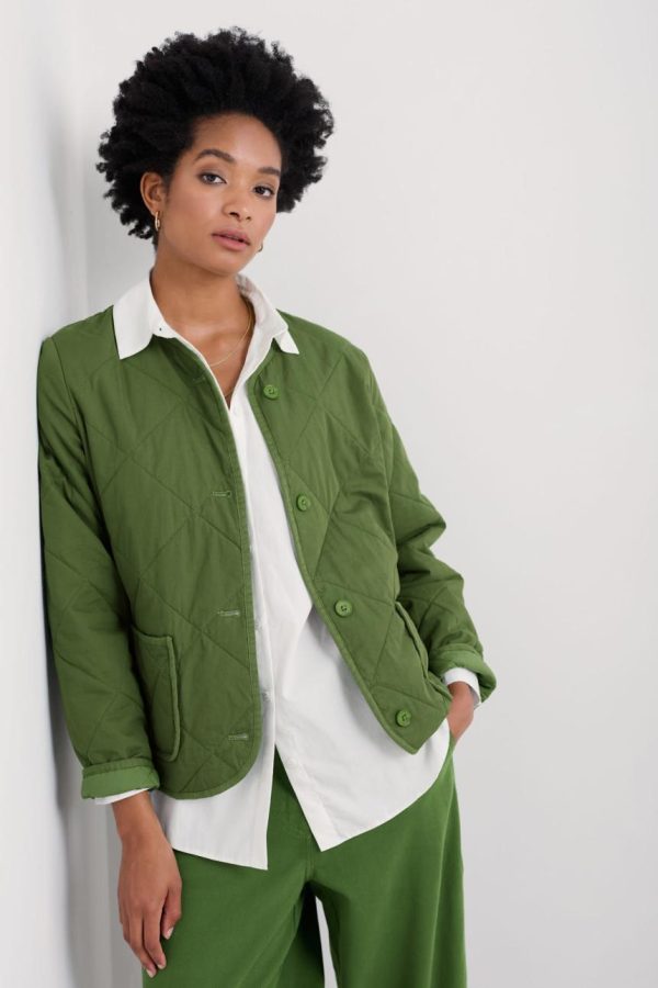 Add a relaxed extra layer with our quilted jacket. It has an easy, oversized fit and subtly dropped shoulders, with long, straight sleeves that can be rolled up for a different look. The curved hem, mock horn buttons and a pair of generous patch pockets add pleasing extra touches. A perfect piece to take you through the seasons.
