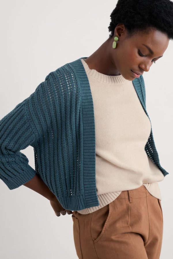 With its open, edge-to-edge style, our Tinners Way Cardigan is the perfect extra layer for the spring and cooler summer days. It’s knitted from soft and breathable organic cotton, with an all-over pointelle pattern and ribbed edges. Dropped shoulders and an easy fit give the textured cardigan a comfortable, relaxed feel.
