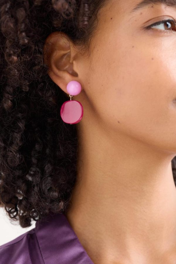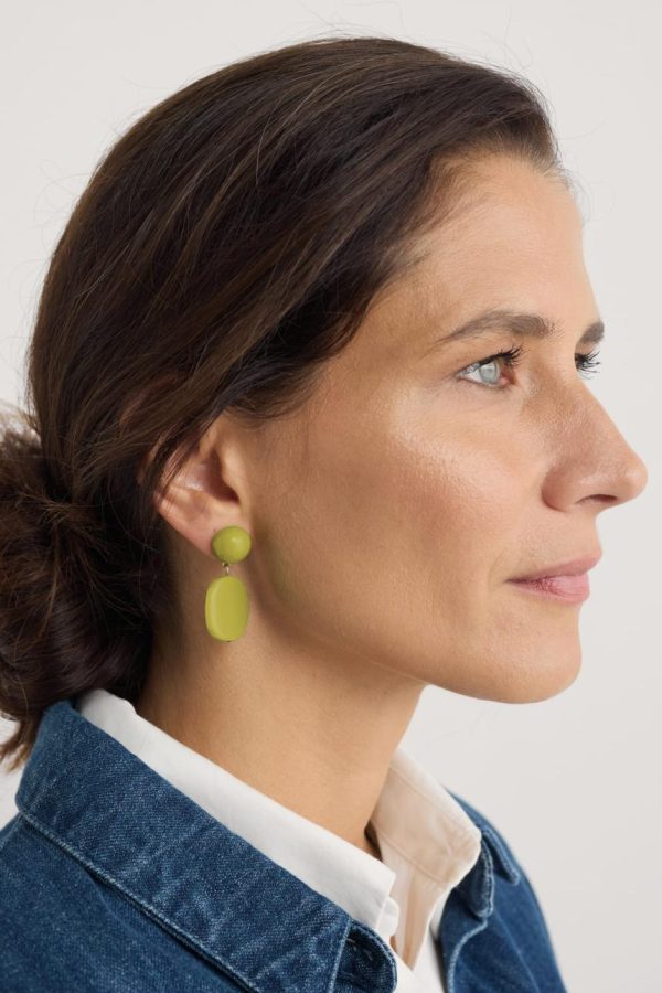 A simple, stylish earring with a round stud and a light drop bead. The subtle organic shape of the bead and the vibrant colours are made to match in effortlessly with this season’s clothing.
